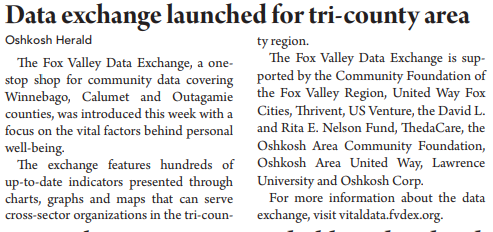 The Oshkosh Herald announces the Fox Valley Data Exchange website: